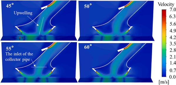 研究针对海底采矿车的双排射流采集装置,系统研究了后射流角度和速度对流场特性、结核运动行为及采集效率的影响。研究发现,后射流角度过小会导致结核剥离与阻挡效果不佳,角度过大则上涌流速度降低,采集效率下降;提出了最优后射流角度。射流速度过低则结核剥离、收集与提升效果差,速度过高则海底扰动增大、能耗效率降低;提出了最优射流速度范围。该研究为双排射流采集装置的参数优化提供了科学依据,对提高深海多金属结核采集效率,推动深海绿色采矿技术的发展具有重要意义。