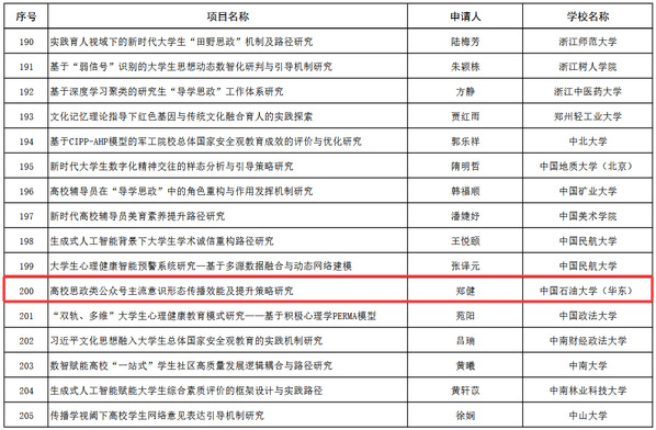 近日,教育部社会科学司公示了2025年度教育部人文社会科学研究一般项目立项结果,其中,高校辅导员研究专项任务项目共立项212项。太阳集团tcy8722网站辅导员郑健主持的《高校思政类公众号主流意识形态传播效能及提升策略研究》获评立项,这是我们今年唯一获批该项目,也是我们辅导员首次获得教育部层面研究项目。