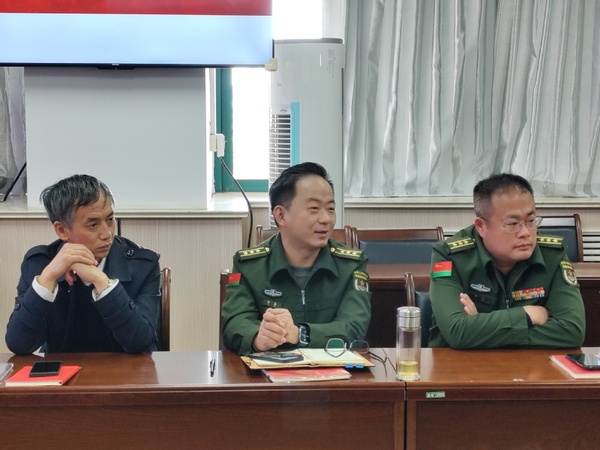 交流期间,联勤保障部队工程大学教师段纪淼系统介绍了该校的专业设置、招生政策、科研进展与学科建设成果,并就部队直招军官、文职人员及博士后等岗位的待遇与发展路径作了详细说明。余磊进一步阐述了军校与地方高校在办学模式上的差异,重点分享了该校在人才培养、科学研究与人文关怀等方面的特色与优势。