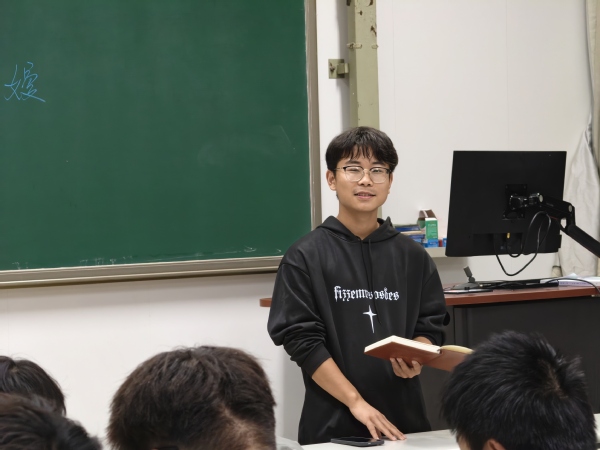 班长裴嘉康讲解争创“优良学风标兵班”的建设计划 丁椿晋摄